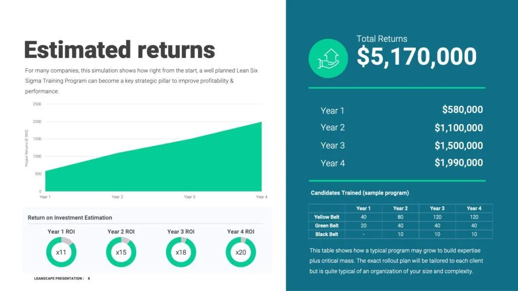 Lean Six Sigma is more than just a methodology—it’s a game-changer. It combines the best of Lean manufacturing principles and Six Sigma quality management techniques to drive efficiency, reduce waste, and boost profitability. See a 32x return on investment (ROI) and witness significant improvements in operational performance.